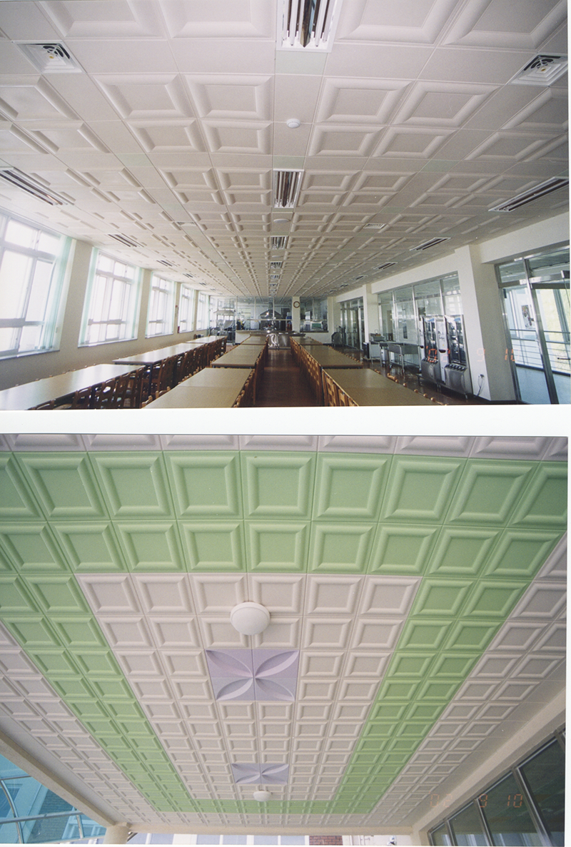 設計特點:本次項目工程所采用的高分子新材料天花板具體有抗菌、防水防潮耐腐蝕老化、節能環保、防火阻燃、易清洗等多種優點:吊頂裝飾中全部采用配套優質吊頂龍骨安裝系統,簡潔易安裝且承吊性好,預留照明安裝空間,使用配套的燈具使現場照明更加明亮,同時高分子新材料天花板所具有的的良好的隔音效果更好的滿足了現代化的商業中心的要求。